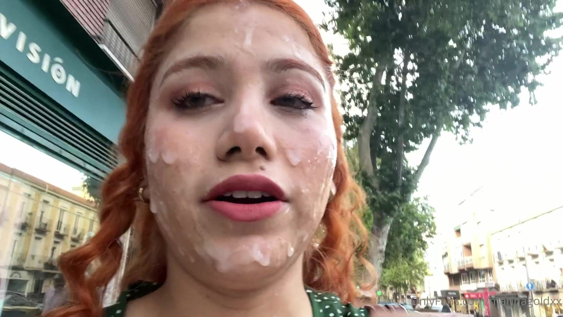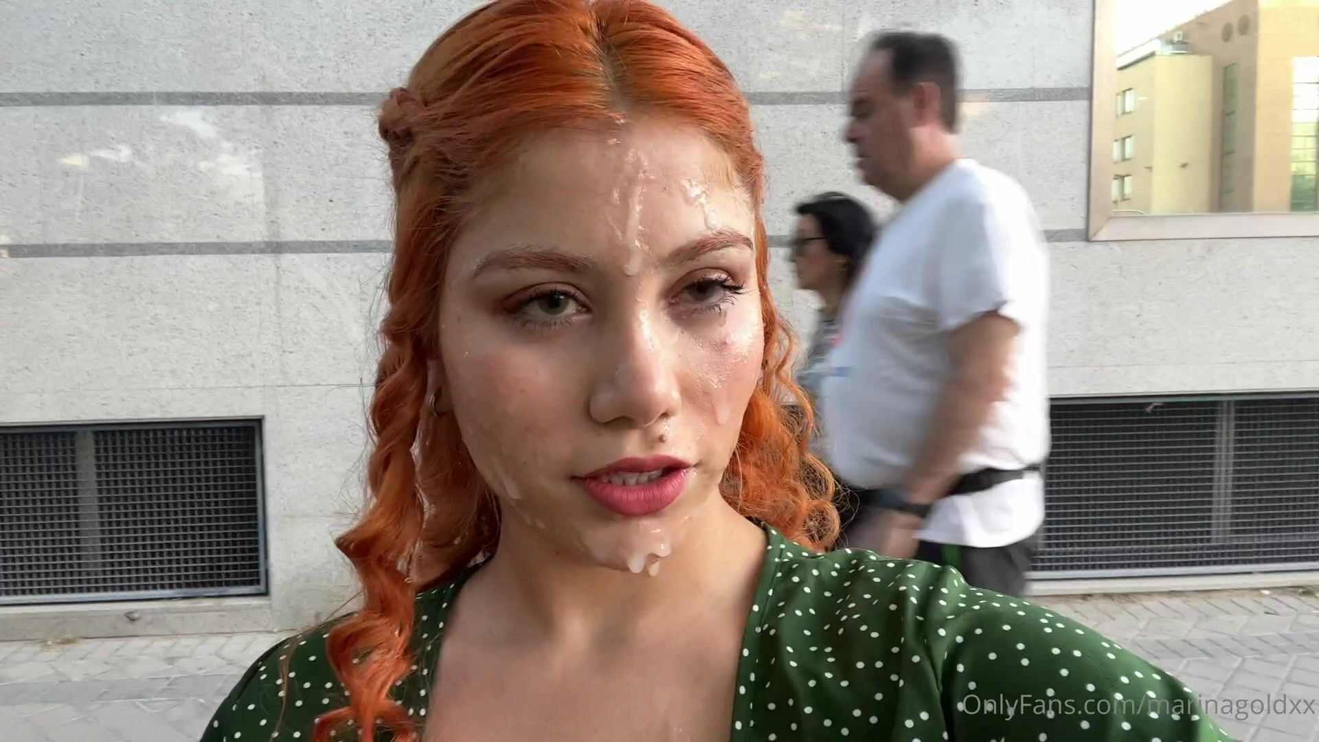 marina gold - massive bukkake facial and public cumwalk